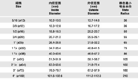 產品規格:內徑范圍 外徑范圍 靜態最小彎曲半徑