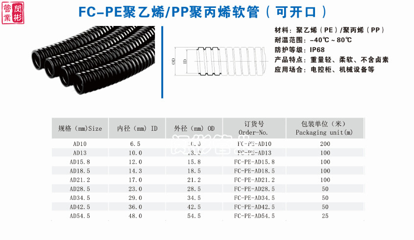 使用方法: 將電線電纜插入管內,在配上塑料波紋管接頭對應的型號使用即可